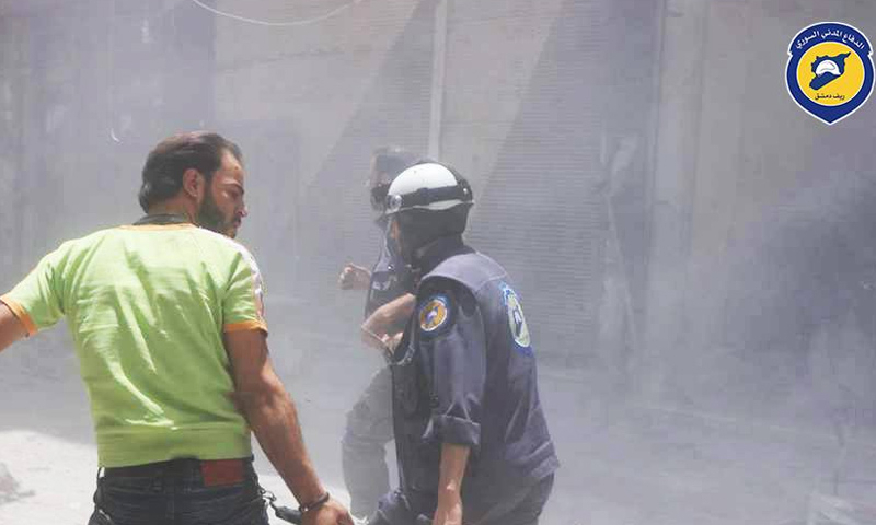استهدف طيران النظام السوري الحربي ومدفعيته الثقيلة، مدينة دوما في الغوطة الشرقية ظهر اليوم، الاثنين 10 تموز.